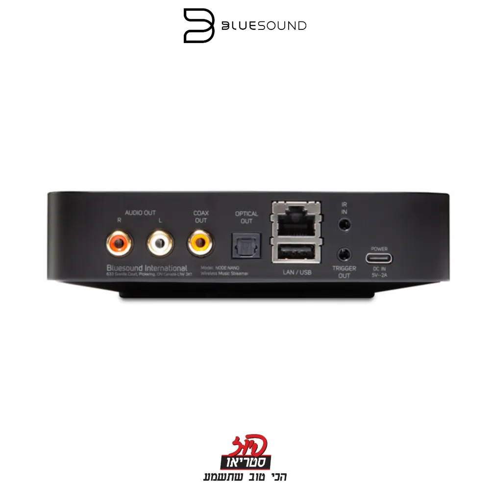 ה-NODE NANO מגיע עם יציאות RCA, אופטיות, קואקסיאליות ו-USB, ומאפשר חיבור לכל מערכת סאונד קיימת. הוא כולל חיבורי Wi-Fi ו-Ethernet מהירים ואמינים להזרמת מוזיקה ללא הפרעות, ומערכת BluOS לניהול התוכן שלכם.