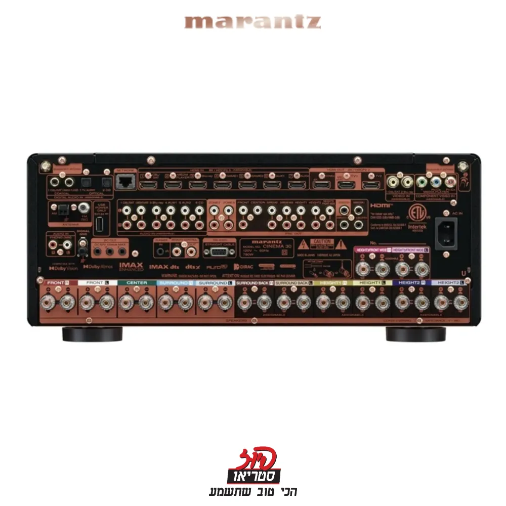 ה-Marantz Cinema 30 הוא רסיבר קולנוע ביתי מתקדם שנוצר במיוחד לאוהבי סאונד מעולה. בעזרת טכנולוגיות הקול והתמונה המתקדמות ביותר שלו, כולל עיבוד 8K ויכולות אודיו כמו Dolby Atmos ו-DTS Pro, הרסיבר מעניק חווית שמע חזקה, עשירה ומלאת פרטים עבור מי שלא מוכן להתפשר על רמת הביצועים. ה-Cinema 30 משלב עיצוב 'מרנצי' אופייני עם ביצועים גבוהים במיוחד.