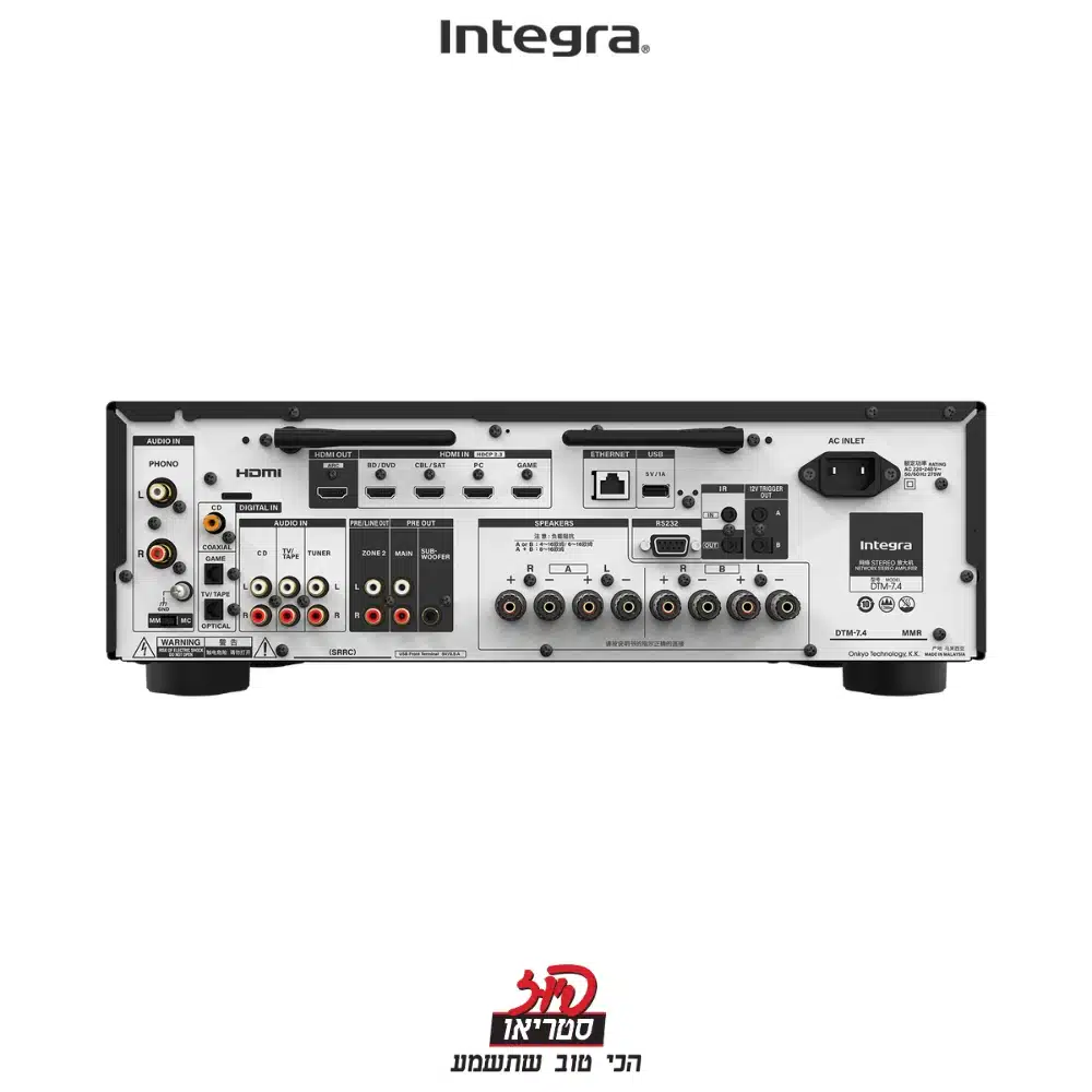 הרסיבר Integra DTM-7.4 נועד להעניק לחובבי סאונד חוויה שאין לה תחרות עם ביצועים מוזיקלים מרשימים, חיבוריות רחבת היקף ותמיכה ברזולוציות וידאו ואודיו המתקדמות ביותר. הרסיבר משלב טכנולוגיות חדשניות כמו תצורת הגברה Class G, רכיב DAC ברזולוציה גבוהה, תמיכה מובנית בשירותי סטרימינג המובילים בעולם והתממשקות מלאה למערכות בית חכם. כל זה הופך אותו לבחירה מושלמת עבור מי שמחפש מערכת שמע איכותית מבלי לוותר על חווית הקולנוע שלו.